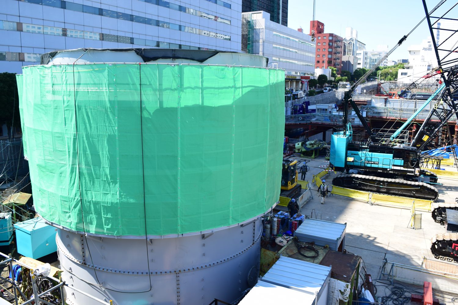 特に印象的だったのは、土を掘削している光景です。奥に見える骨組みからも、地下への建設が推測されます。そこで、本記事「2.1.3.C地区」に掲載されている「品川駅西口地区 再開発等促進区を定める地区計画 都市計画(素案)の概要」を確認すると、地下には駐車場が建設予定であることがわかりました!現在の状況を見ると、地上に建物が完成するまでにはまだ時間がかかると思われます。