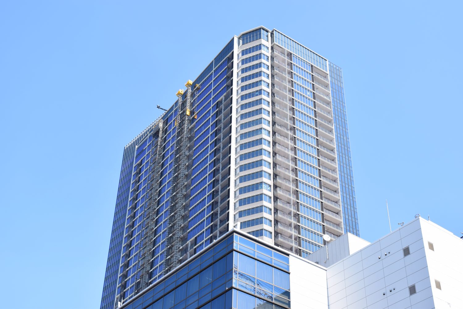 右側の写真は、文化創造棟を撮影した場所から、住宅棟も撮影したものです。この住宅棟は「CITY RESIDENCE(シティレジデンス)」という名称が付けられており、地上44階建てで、全室賃貸となる予定です。住宅棟の立地や周辺環境を考えると、非常に人気の高い物件になりそうです!