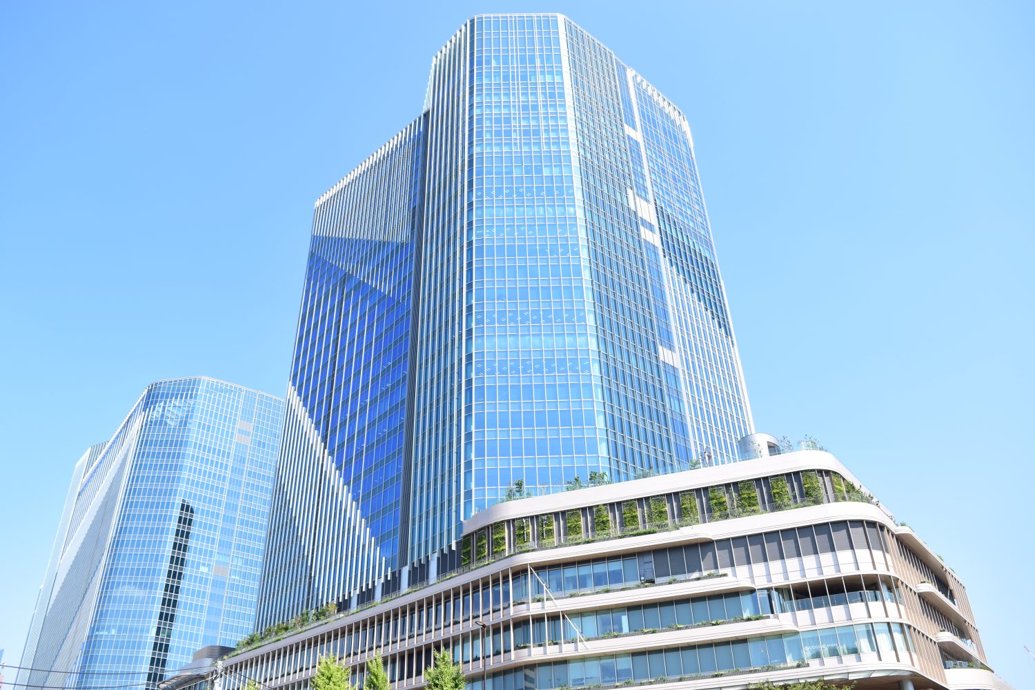 右側は、低層階だけをクローズアップして撮影した写真です。オフィスビルの下層階にはランチなどが楽しめるフロアが設けられるのではないかと期待されます。低層階の天井が少し高めに設計されていることも、その可能性を感じさせます。