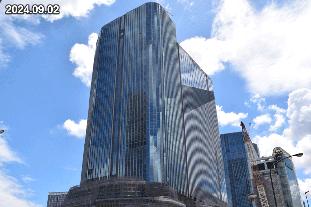 右側は、低層階のみに焦点を当てて撮影した写真です。現状では、まだ完成には程遠い状態で、内装や設備の工事がこれから本格化していくものと思われます。