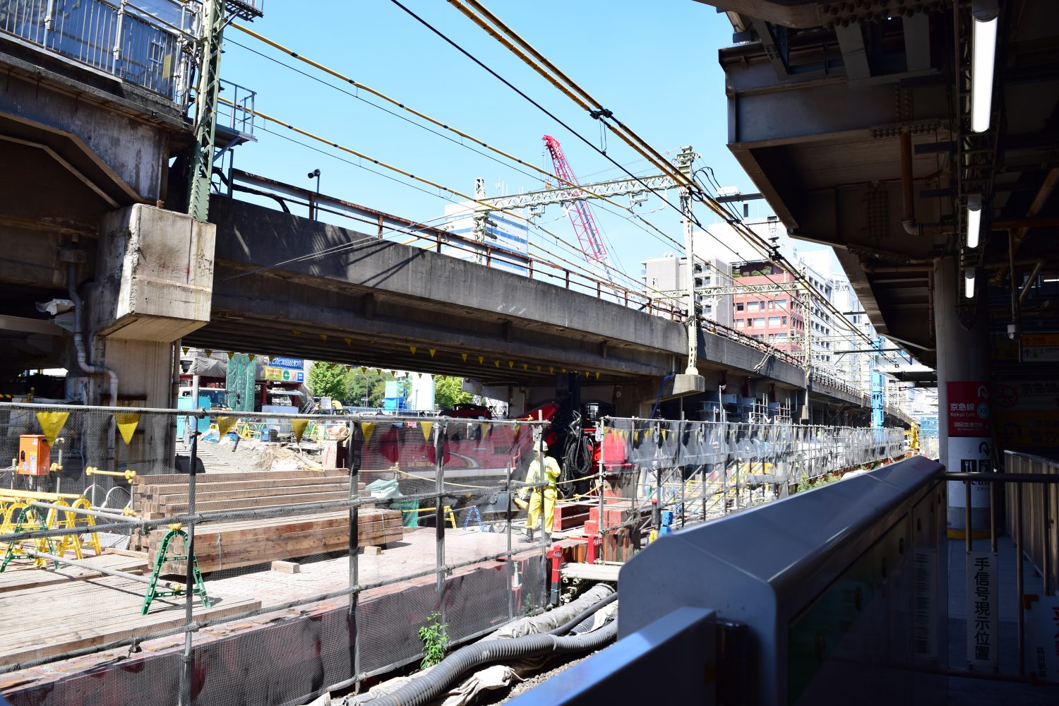 Wing高輪前から移動し、JR山手線品川駅の東京・上野方面ホームに移動しました。前回と比べると、機材の種類が変わっていることから、工事が次の段階に移ったことがうかがえます。