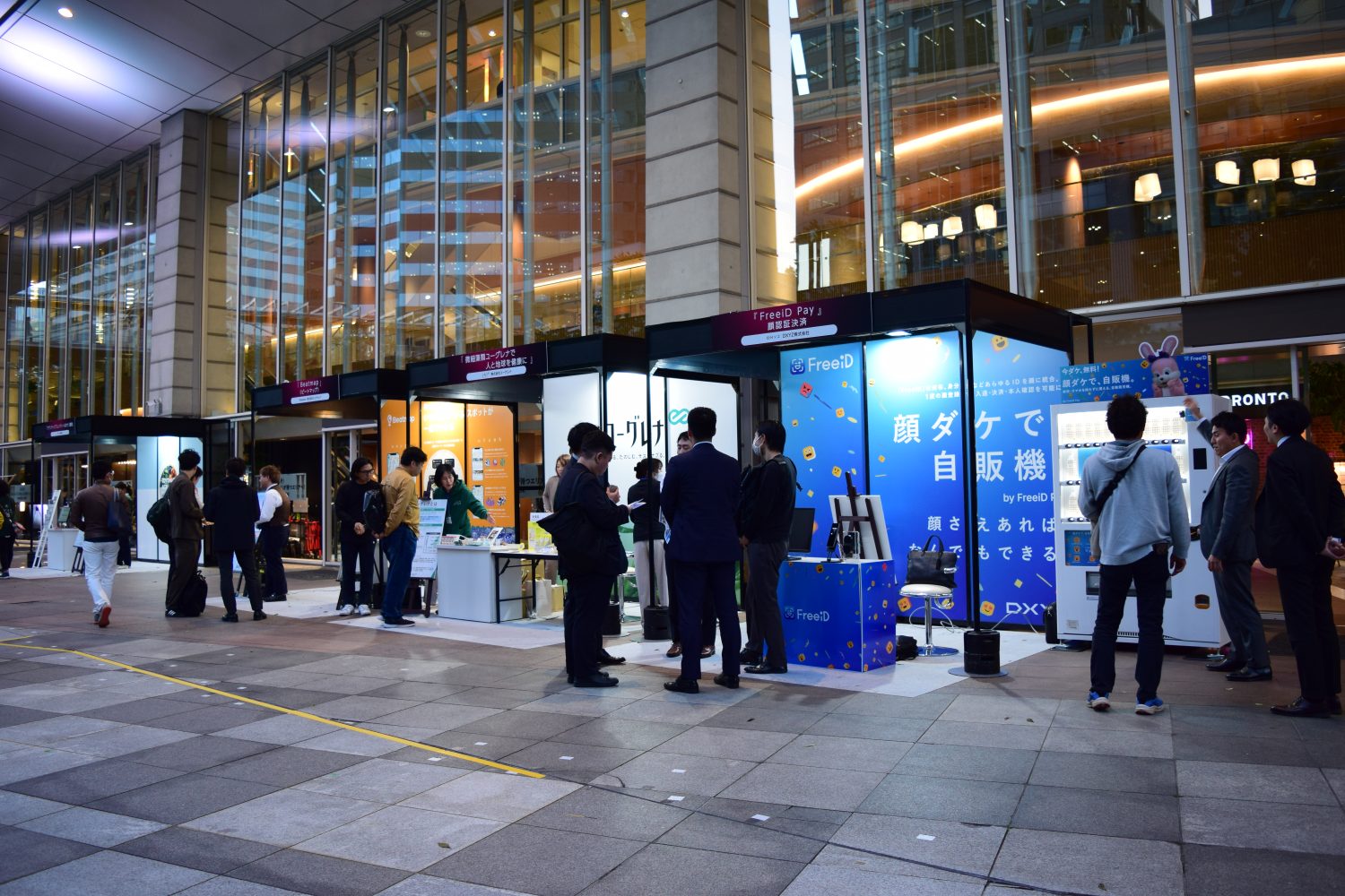 17時30分頃の会場では、仕事帰りに立ち寄るオフィスワーカーの姿が多く見られました。展示ブースには、微細藻類ユーグレナを活用した食品開発や、API提供型の情報データベースなど、さまざまな取り組みが並んでいました。中でも、顔認証による決済デモは来場者の関心を集めており、その場で購入まで完結する様子に、足を止める人も多く見られました。