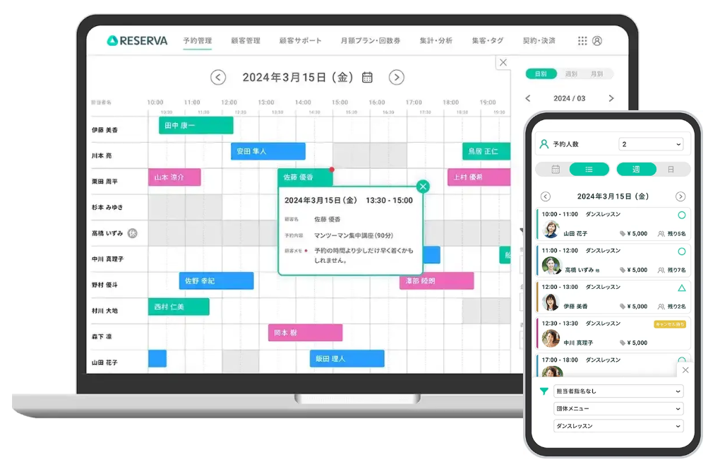 コントロールテクノロジーは、予約システム「RESERVA(レゼルバ)」の開発・運営を行っています。RESERVAは、予約受付から顧客管理、決済までをオンラインで一元管理できる、国内最大級のクラウド型予約システムです。350を超える幅広い業種に対応しており、累計導入社数は35万社に達しています。