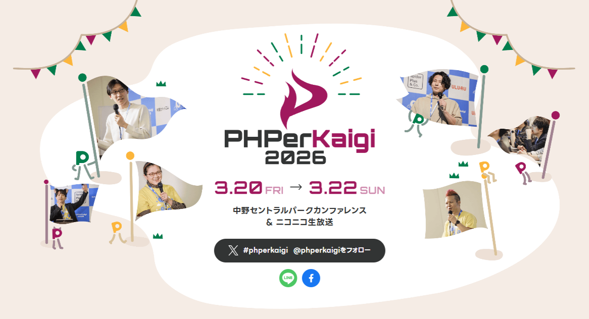 PHPerKaigiは、PHPに関する技術的なノウハウや知見を共有するイベントです。2026年度は、昨年と同様にオフラインとオンラインのハイブリッド形式で開催される予定です。