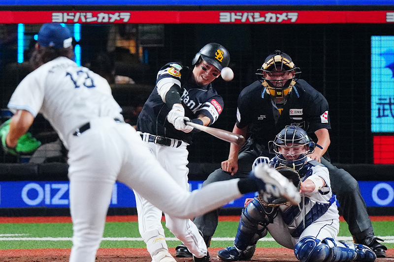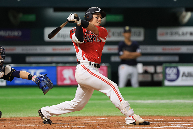 4連戦初戦、ソフトバンクは1回裏で早速ランナーを一塁と三塁に構え、近藤健介選手によるライトへの先制タイムリーヒットで1点を先制。続けて、9番・牧原大成選手もタイムリーヒットを打ち2-0としました。しかし4回表、オリックスの若月健矢選手による3ランホームランで逆転を許します。