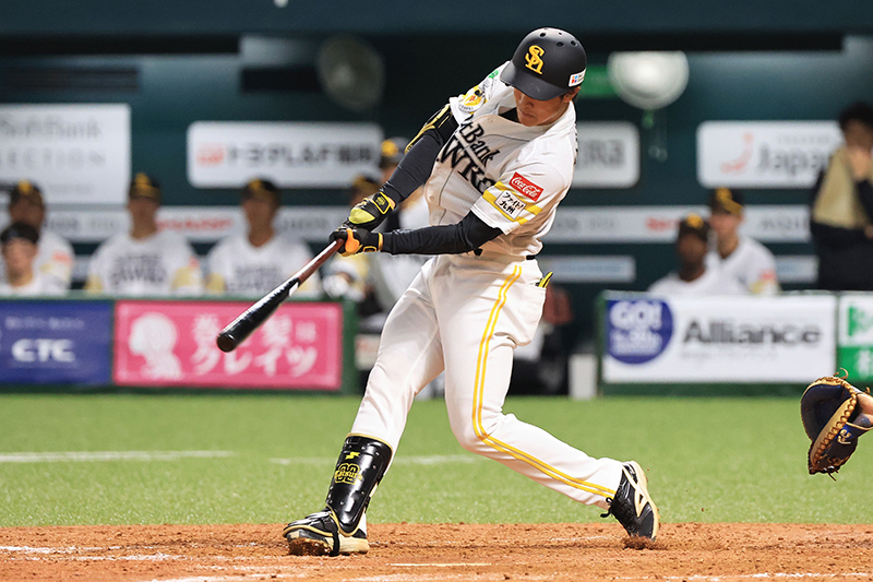 第3戦は、1回裏に柳町達選手のタイムリーツーベースで先制します。2回表に万波中正選手によるソロホームランで逆転を許しますが、直後の2回裏で川瀬晃選手が再びリードを奪います。3回表に清宮選手のソロホームランで1点を返されますが、その後も川瀬選手のタイムリーで追加点を挙げました。