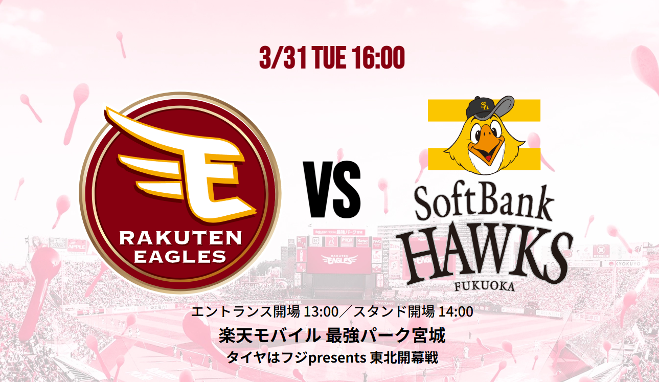 次回は、3月31日から4月2日にかけて楽天モバイル最強パーク宮城で行われる、東北楽天ゴールデンイーグルスとの3連戦です。前回対戦では、両チームが1勝1敗で分け合いました。今回は3連戦で行われるため、勝ち越しの行方に注目が集まります。開幕3連勝で好スタートを切った流れを維持できるか、チームの戦いに期待が高まります。