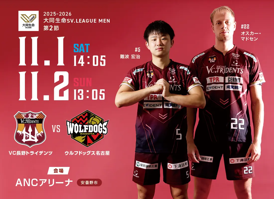 VC長野は、勢いこのままに11月1日(土)、2日(日)、ウルフドッグス名古屋を安曇野市ANCアリーナにて迎え撃ちます!